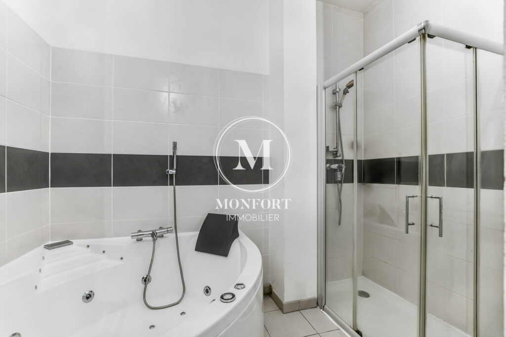Il se compose d’une entrée avec placard, d’une cuisine fermée aménagée et équipée, et d’un vaste séjour d’environ 40 m2 ouvrant sur une terrasse de 15,23 m2. L’espace nuit comprend deux chambres, une salle de bain avec douche et baignoire, ainsi qu’un WC séparé.