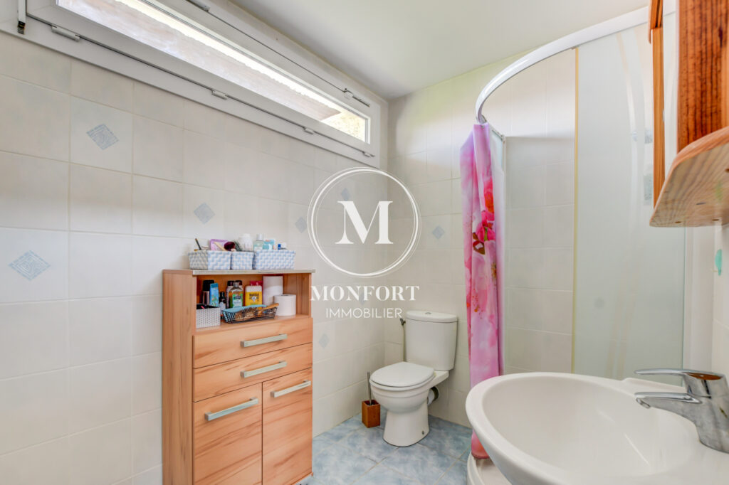 D’une surface d’environ 76 m2, elle se compose au rez-de-chaussée d’une cuisine séparée et équipée, d’un séjour avec espace salle à manger, d’un cellier et d’un WC indépendant.