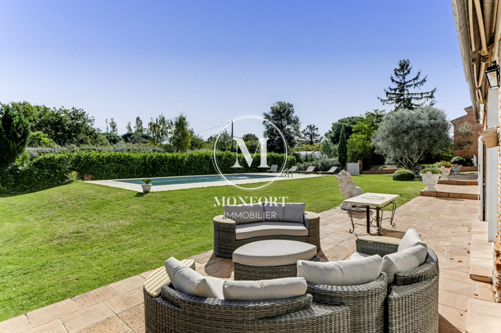 À l’extérieur, le charme opère immédiatement. Le terrain, sans vis-à-vis, propose plusieurs ambiances, dont un espace verger, et accueille une très belle piscine de 12 x 5,5 m entourée d’une élégante terrasse en travertin. Le pigeonnier, véritable signature de la maison, apporte une touche d’authenticité supplémentaire.