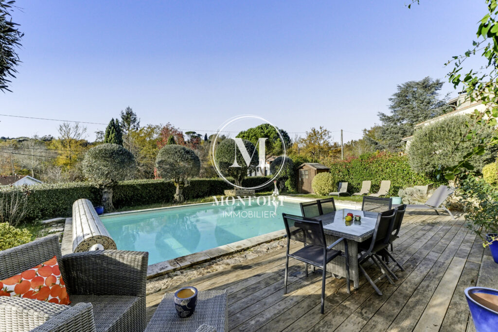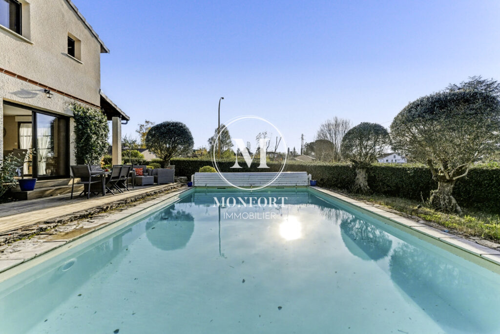 Grande maison de famille T9 en très bon état, d’une surface d’environ 221 m2, implantée sur une parcelle d’environ 750 m2 avec piscine, plus de 200 m2 de terrasses et un terrain de pétanque.