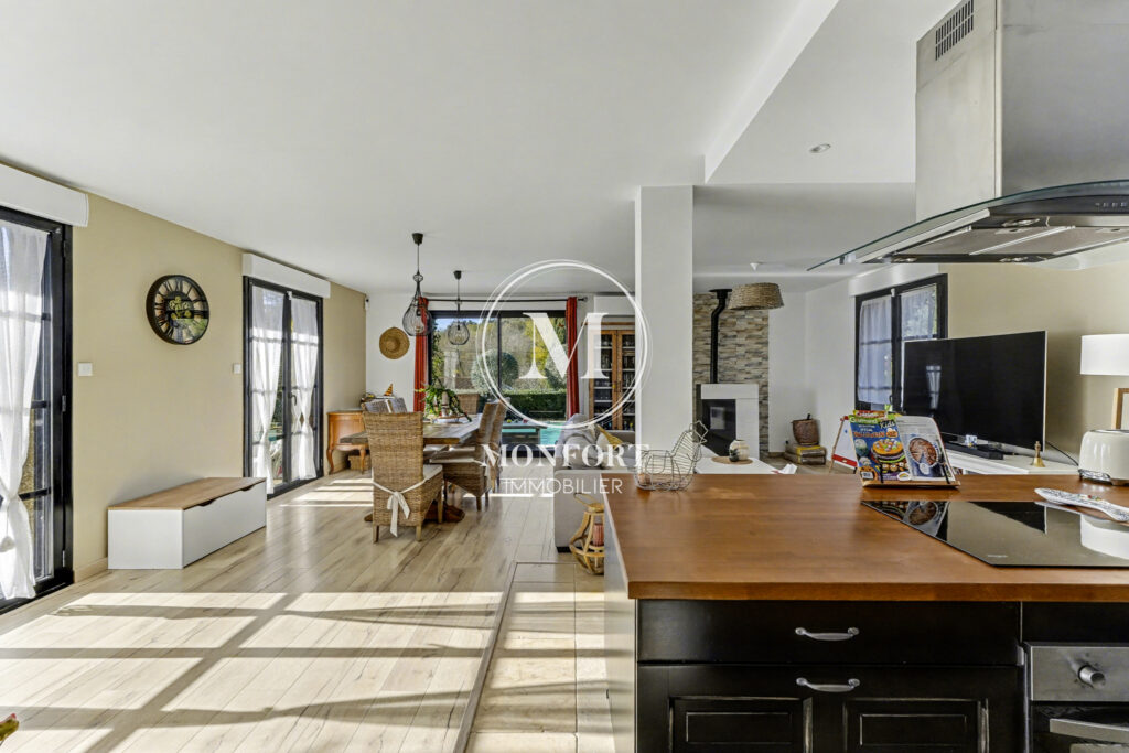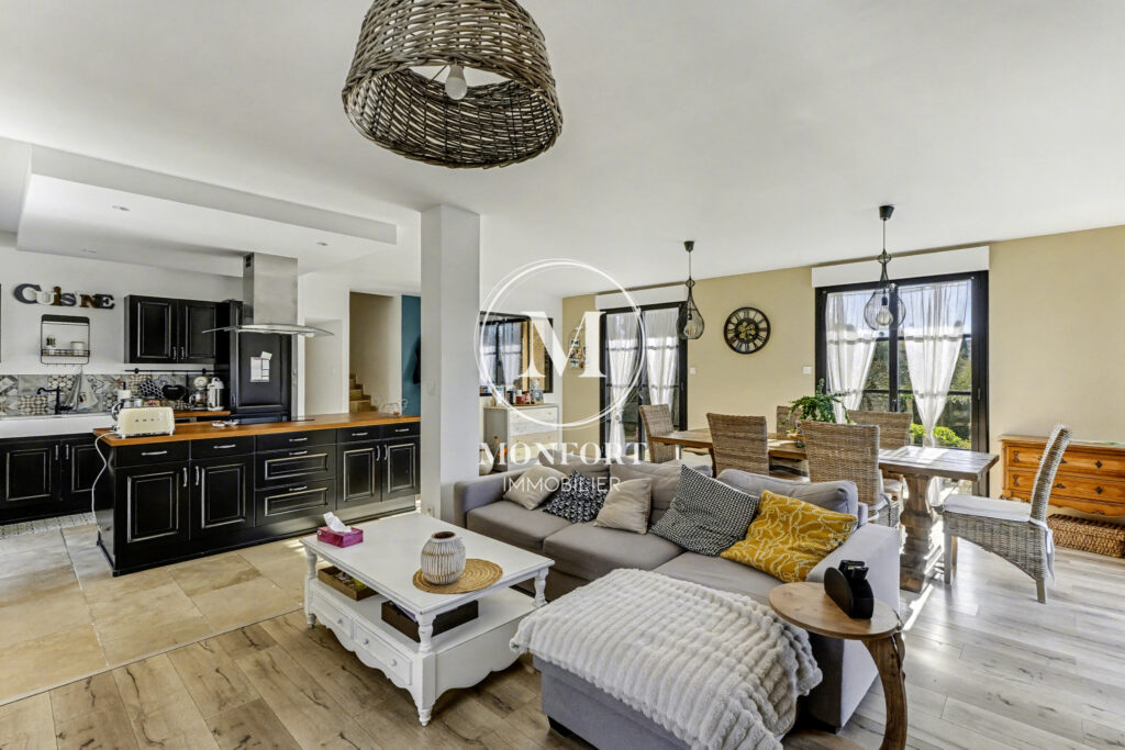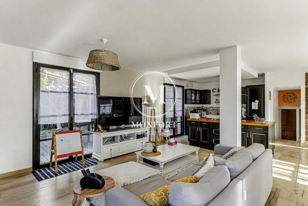 La maison offre de très beaux volumes et une organisation idéale pour une vie de famille confortable. Au rez-de-chaussée, vous découvrirez une belle pièce à vivre d’environ 55 m2 avec cuisine ouverte, bénéficiant d’une triple exposition et d’une luminosité remarquable.