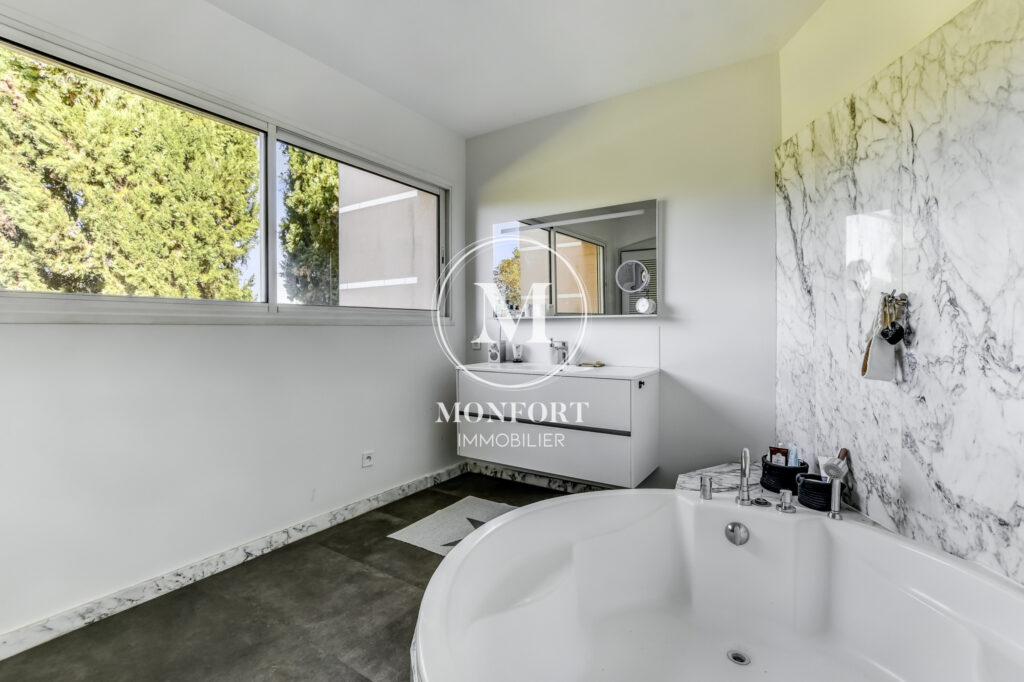 À Castelmaurou, dans un environnement privilégié, découvrez cette maison d’architecte d’environ 220 m2, nichée sur une parcelle arborée de 4000 m2 environ au charme d’un véritable parc, piscinable.