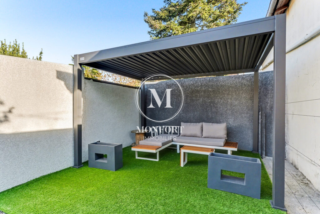 La maison se compose d’une entrée, d’une pièce à vivre lumineuse avec cuisine ouverte équipée, d’une buanderie, d’un wc séparé et d’une chambre avec salle d’eau attenante. La parcelle d’environ 370 m2 est entièrement exploitable et piscinable. Deux terrasses avec pergola bioclimatique permettent de profiter pleinement de l’extérieur. Une dépendance de 17,5 m2 vient compléter le bien et offre de nombreuses possibilités (atelier, stockage, bureau…).