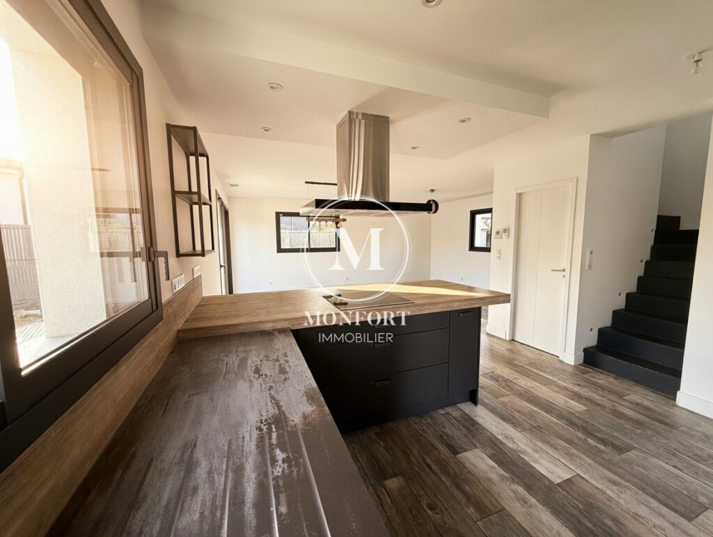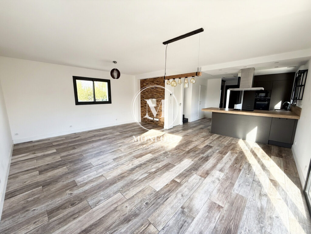 D’une surface d’environ 106 m2, elle se compose au rez-de-chaussée d’une entrée avec placard, d’un vaste séjour avec cuisine ouverte entièrement équipée de plus de 50 m2, offrant un bel espace de vie lumineux et convivial, ainsi qu’un wc et un espace de rangements. Un garage d’environ 25 m2 complète ce niveau.